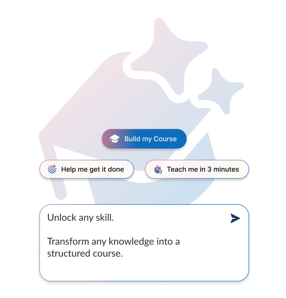 Unlock any skill. Transform any knowledge into a structured course. Teach and learn anything just in 3 minutes, in different ways.